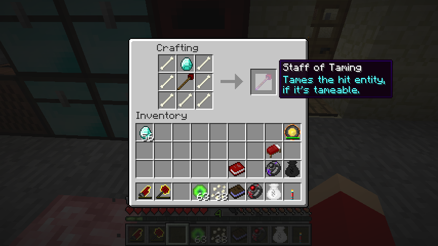 また、これ以外にもEntityTameableを継承しているモブであればテイムできるのではないかと思われます。
