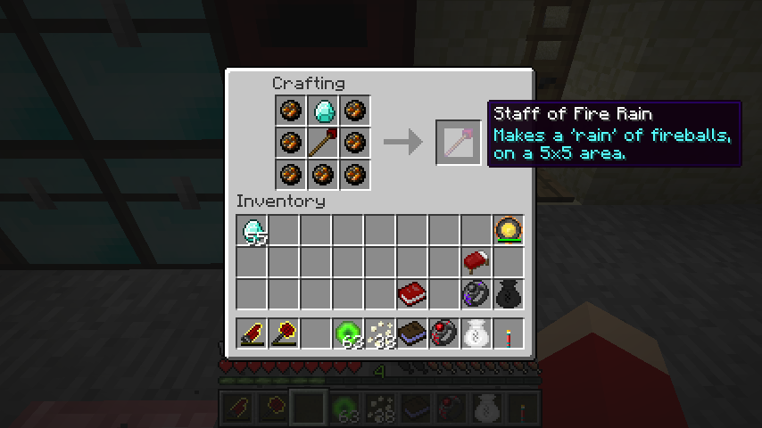 空の杖、ダイヤモンド、ファイアチャージ*7で炎の雨の杖(Staff of Fire Rain)。