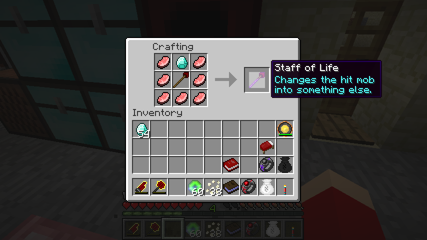 空の杖、ダイヤモンド、生豚肉*7で変化の杖(Staff of Life)。