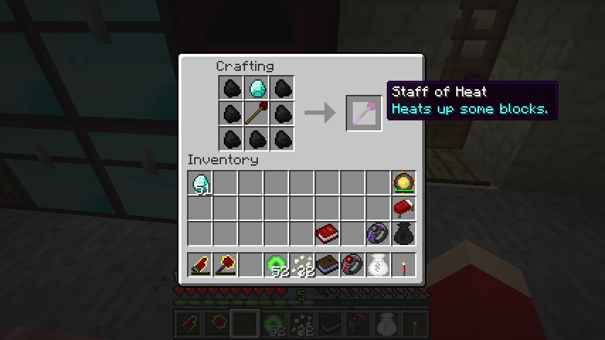 空の杖、ダイヤモンド、石炭*7で赤熱の杖(Staff of Heat)。