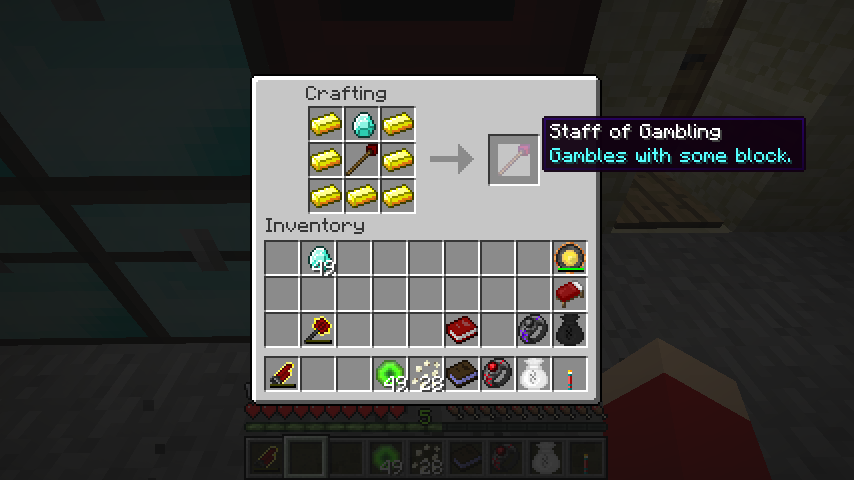 空の杖、ダイヤモンド、金インゴット*7でギャンブルの杖(Staff of Gambling)。