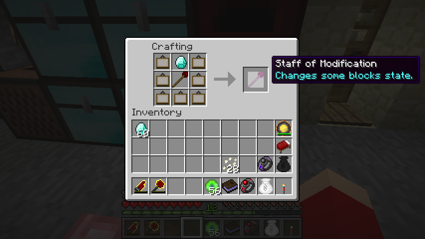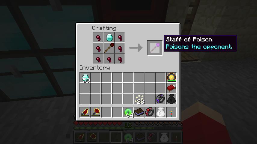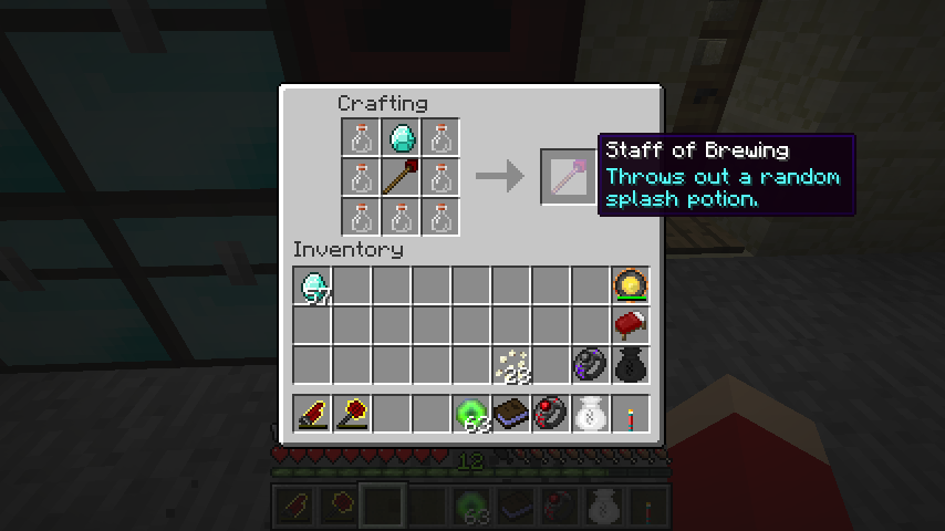 空の杖、ダイヤモンド、ガラス瓶*7で醸造の杖(Staff of Brewing)。