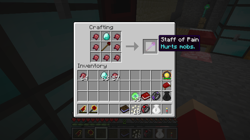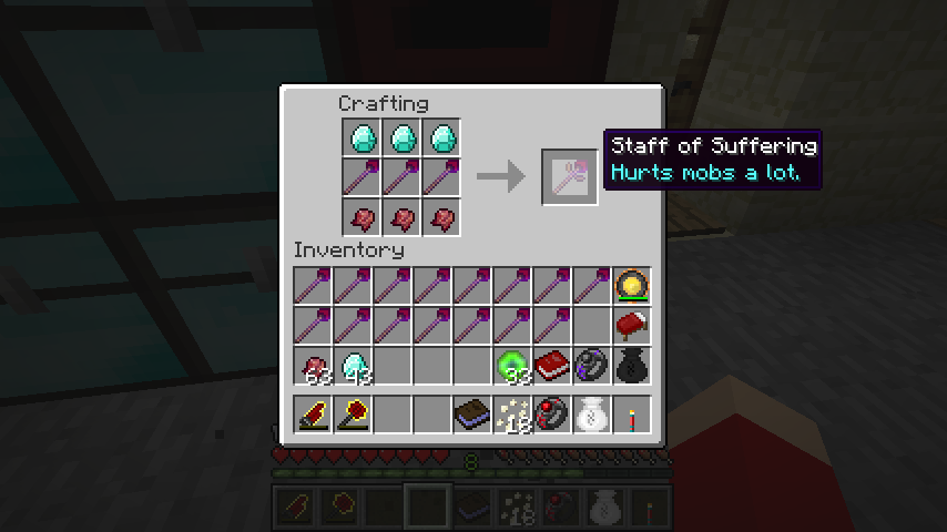 痛みの杖*3、ダイヤモンド*3、発酵した蜘蛛の目*3で苦痛の杖(Staff of Suffering)。