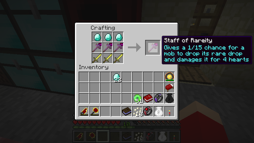 苦痛の杖*3、ダイヤモンド*3、金の剣*3でレアの杖(Staff of Rareity)。