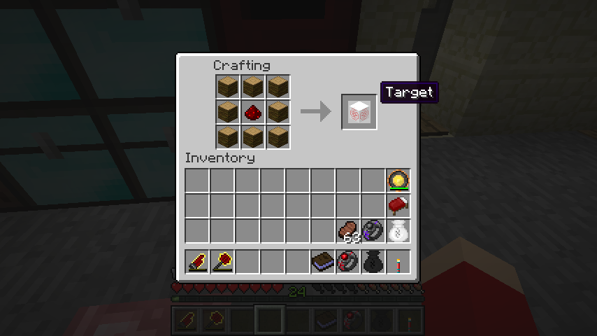 まず的ブロック(Target)のレシピはレッドストーン、原木*8。