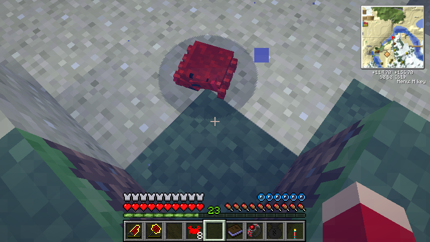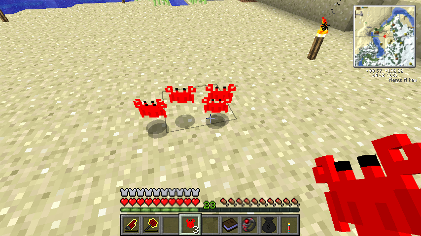 まず本MODを導入すると、海や川、ビーチなどのバイオームに無害なモブとして蟹が発生します。