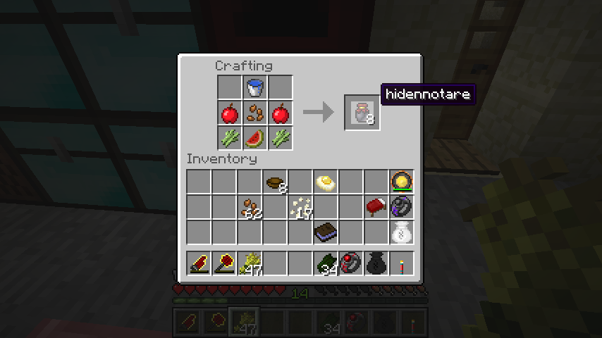 まず秘伝のタレ(hidennotare)は水バケツ、りんご*2、サトウキビ*2、炒り豆、すいかとわりと複雑なレシピ。