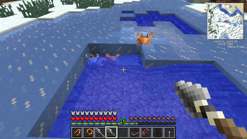 氷を右クリックすると、氷を割って時々魚がドロップするという仕組みになっています。