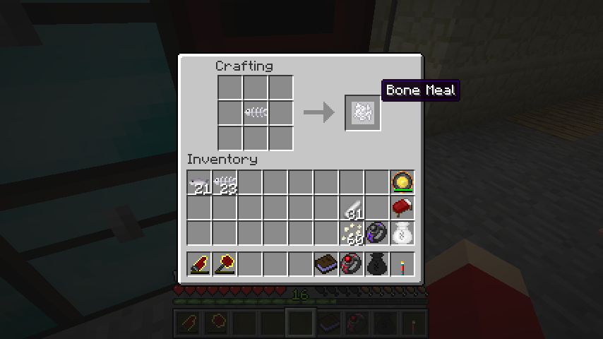 そのままクラフトで骨粉になるほか、木材、魚の骨*2で氷鋸(Ice Saw)に。