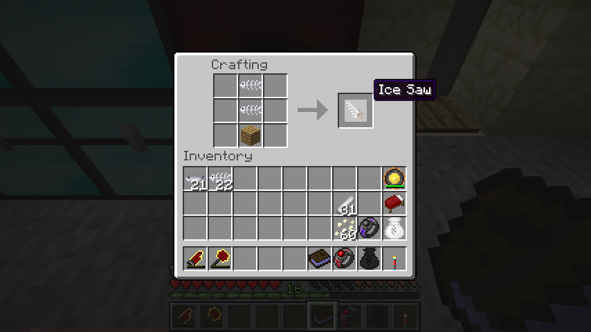 氷鋸で氷に右クリックすると、氷のまま回収することができるようになります。