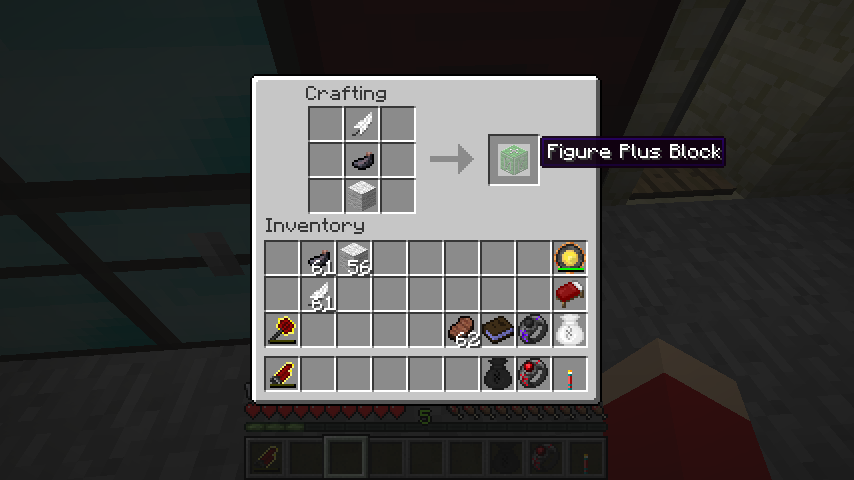 まず数字ブロック+(Figure Plus Block)は羽根、墨、羊毛。