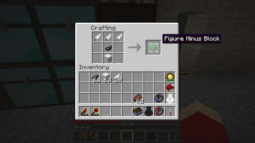 羽根*3、墨、羊毛で数字ブロック-(Figure Minus Block)。