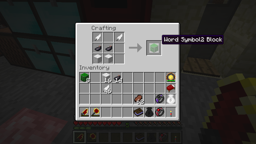 羽根*2、墨*2、羊毛*2で装飾ブロック(Word Symbol Block)および装飾ブロック2(Word Symbol2 Block)。