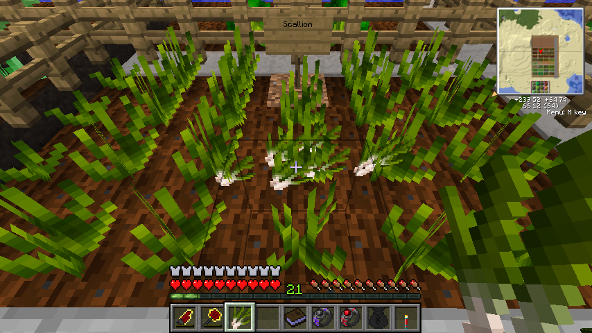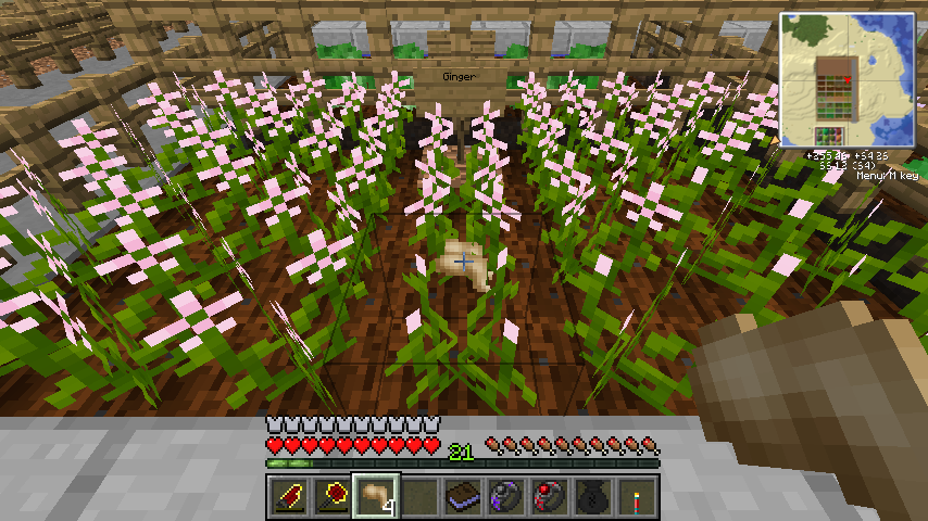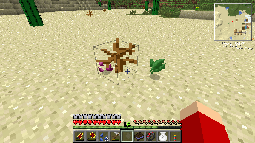 では何かというと、こいつを手に持ち一部のブロックを右クリックで殴ると希に色々な種子を落とします。