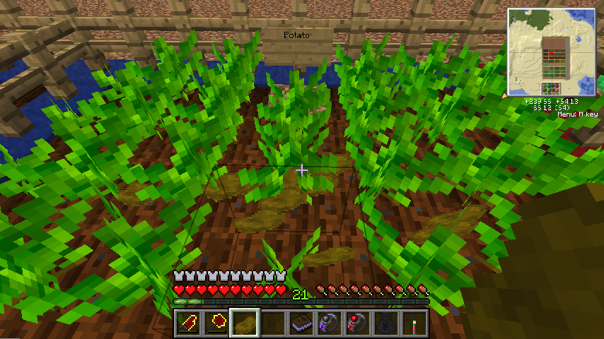 野菜6種は基本的にどれも同じような性質で、最大まで成長した株を叩くと実を2個ドロップします(じゃがいもだけ4個弱)。