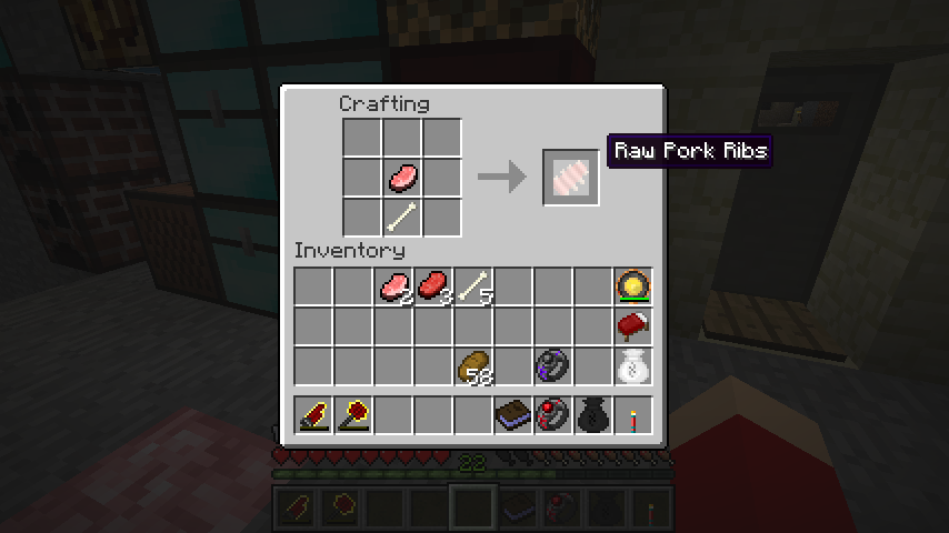 満腹度回復量はやはり生が0.5、焼きが3なので豚肉そのまま焼いた方がいいです。