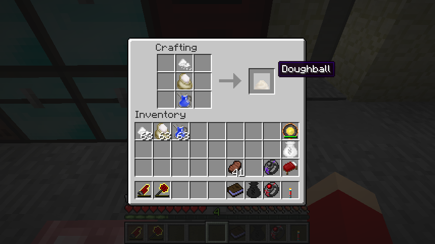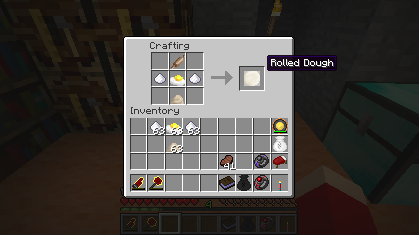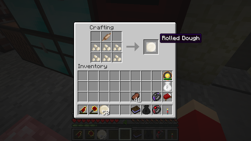生地を右クリックすると生地の破片(Bits of Dough)になりますが、生地の破片*6とめん棒でビスケット生地に戻すだけしか用途のない損失オンリーのレシピです。