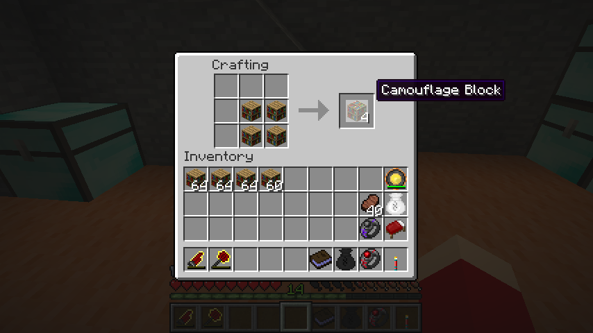 Camouflage Blocksは、真下にあるブロックと同じ見た目に変化するブロックを追加します。