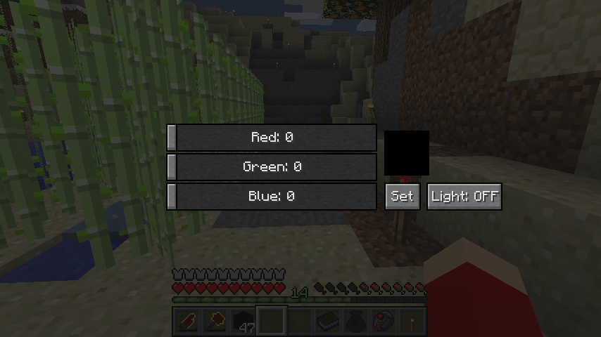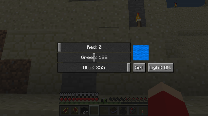 Cキーを押すとインベントリが開き、RGBそれぞれの色、および発光するか否かをセットできます。