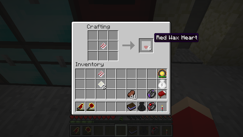 それぞれを単にクラフトするとハート型の蝋(Wax Heart)。