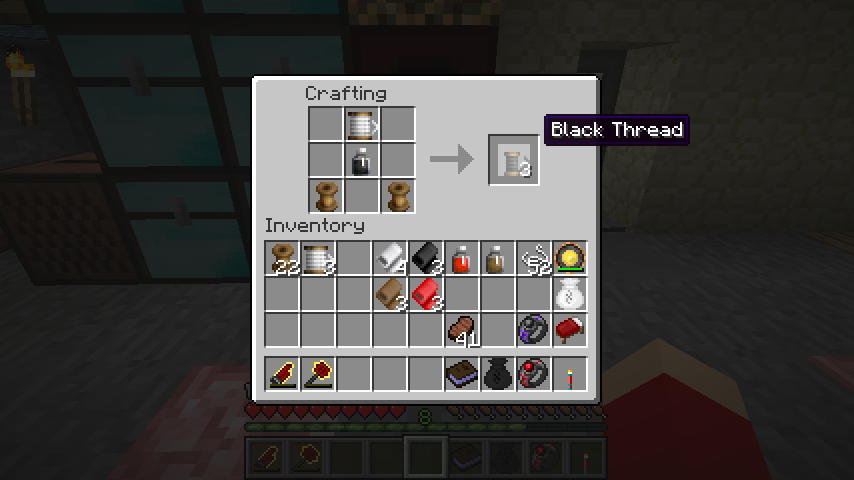 糸巻き*2、縫い糸、食用色素で糸(Thread)。