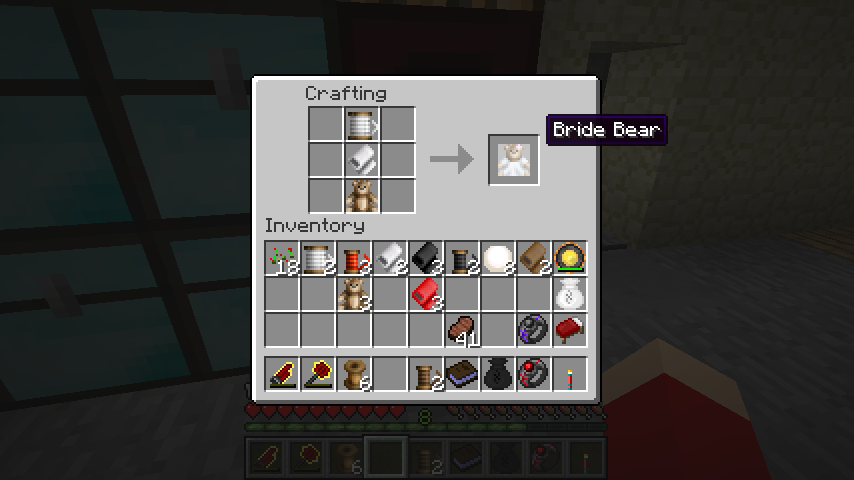くまの人形、白い布、白い糸で花嫁くまの人形(Bride Bear)。