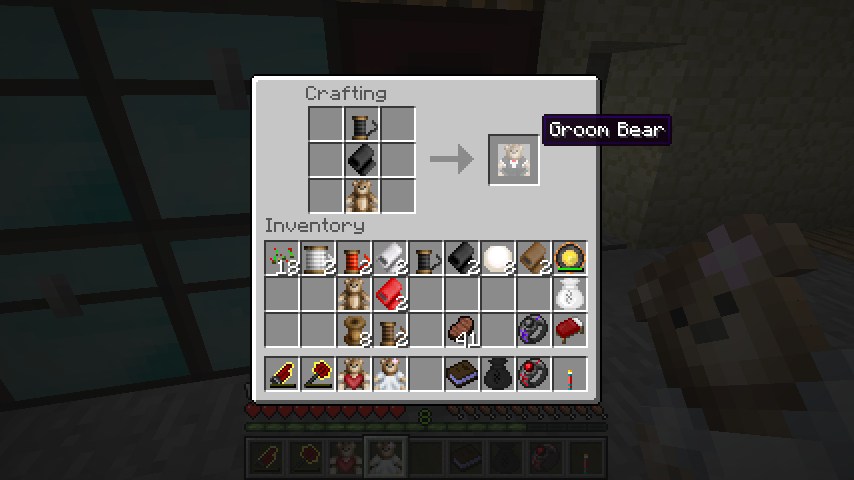 くまの人形、黒い布、黒い糸で花婿くまの人形(Groom Bear)。