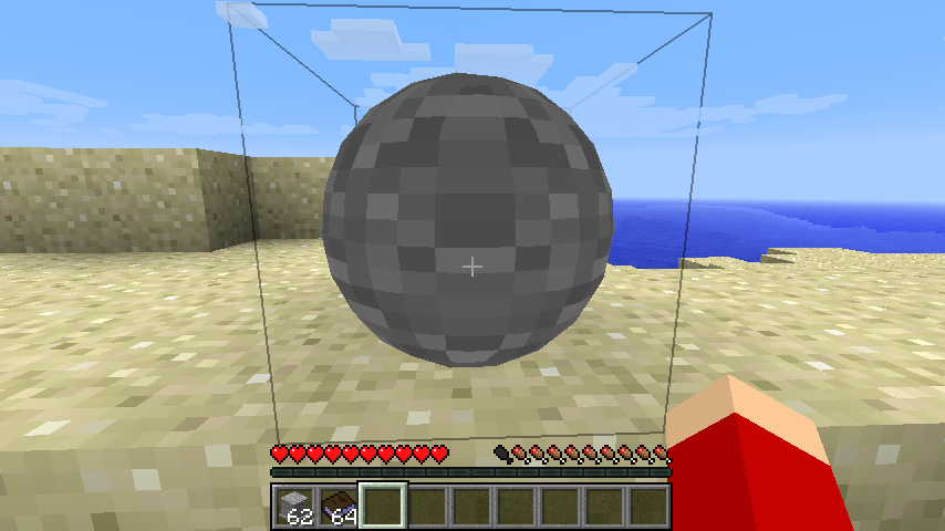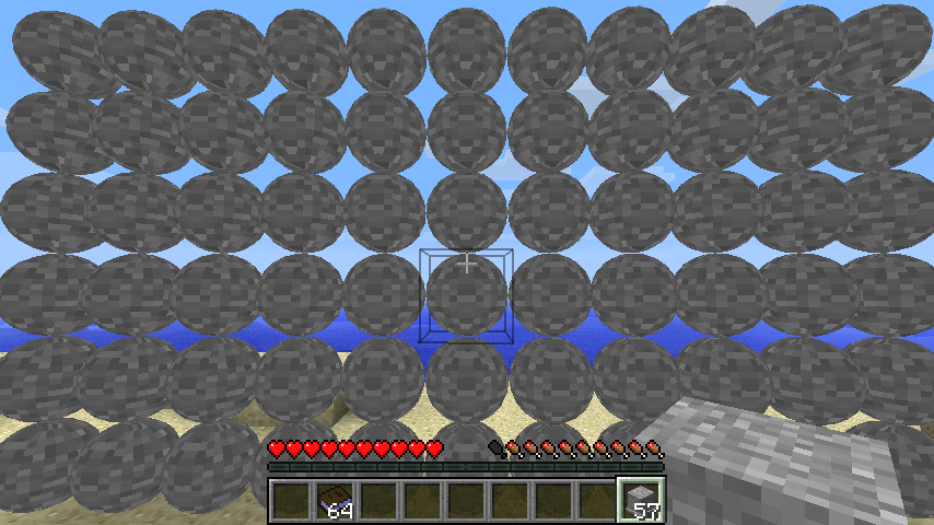 他のゲームだと球なんてありふれた存在でしかありませんが、マインクラフトの世界で出てくると異質極まりない質感ですね。