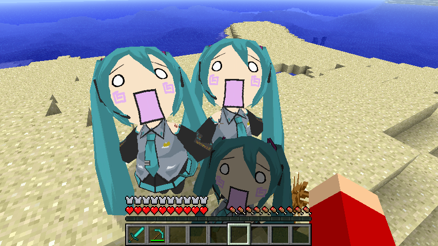 次はこの丸いモデルを進化させた、モブとしてはちゅねを追加するMOD、はちゅね in Minecraft。