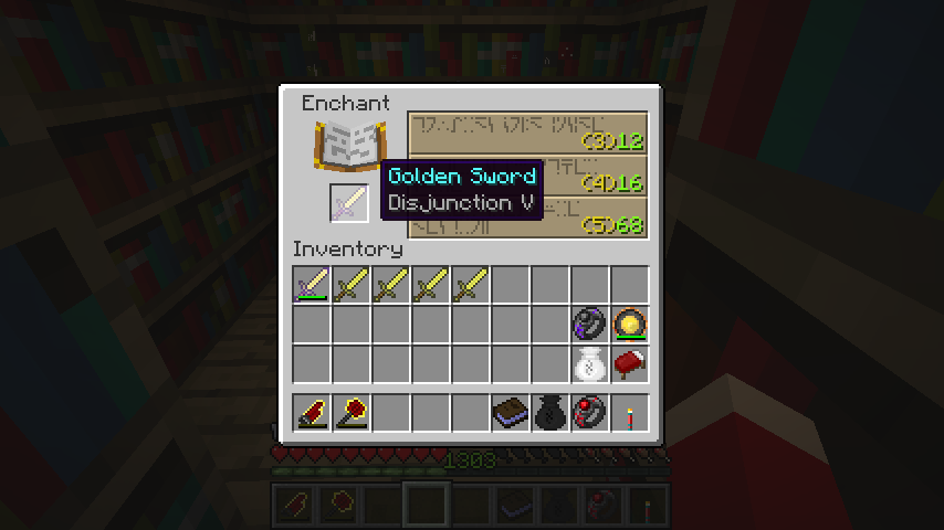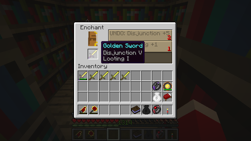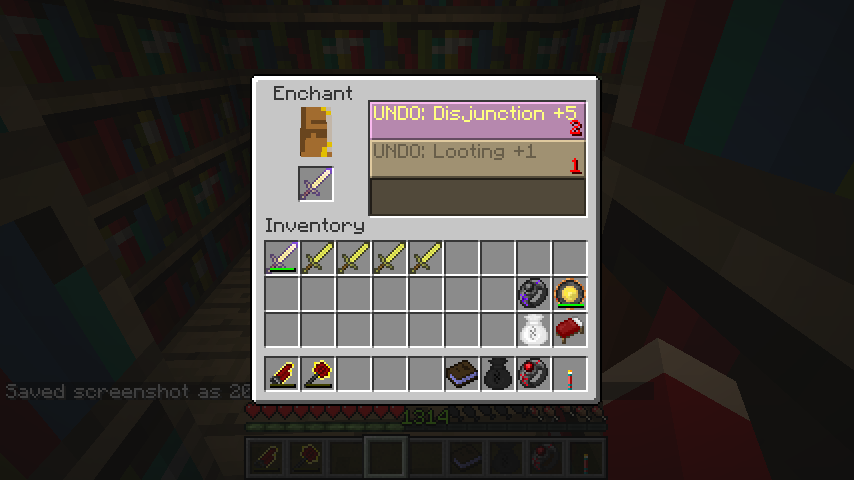 剣の「Sharpness」「Disjunction」「Bane of Arthropods」「Smite」は最初のエンチャントにしか出てこず、重ね掛けで出てくることがありません。