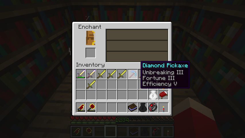 これを導入すると、まずエンチャントテーブルの本棚サーチ能力が変わります。