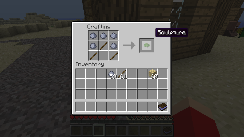 まず彫刻(Sculpture)のレシピは粘土*5、木の棒*3。