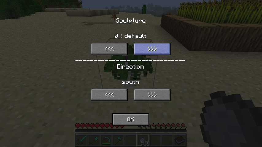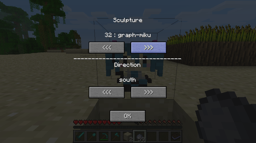 あとGUIでの見た目選択がマウスのクリックしか効かないうえに押しっぱなしも効かないので、たくさん彫刻を入れているとひたすら連射を強いられます。