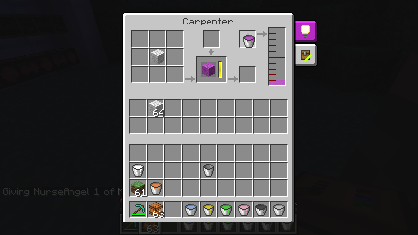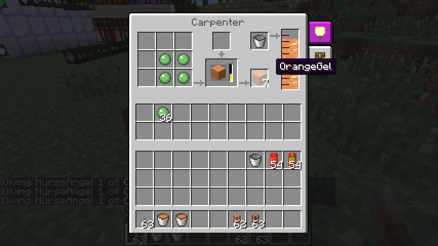 スライムボール*4を工作機に並べ、色つき油を投入することで色つきゲル(Gel)になります。