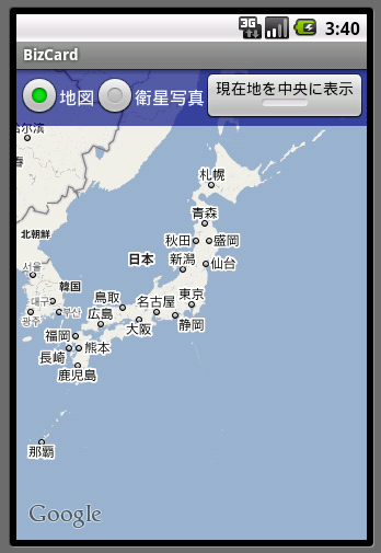 これまでアクティビティはすべてandroid.app.Activityクラスを継承していましたが、GoogleMapAPIを利用するアクティビティはcom.google.android.maps.MapActivityを継承する必要があります。