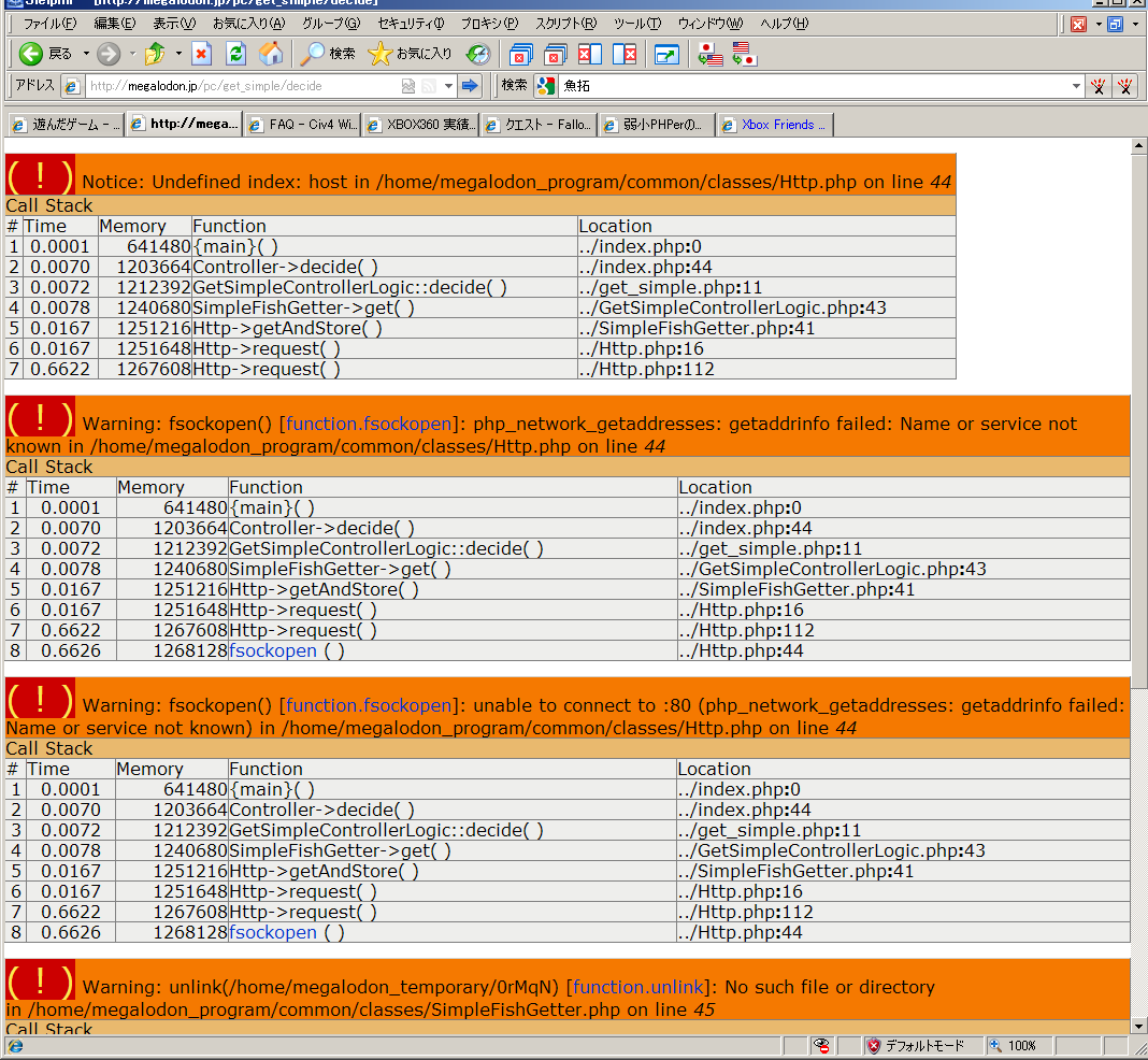あと魚拓取ろうとしたらXdebugのエラーが出たんだがお前も大丈夫か?