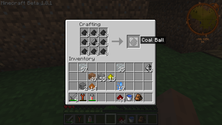 石炭の粉*8とフリントで石炭の玉(Coal Ball)を作成。