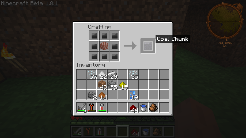 圧縮した石炭玉*8と煉瓦ブロックで石炭の塊(Coal Chunk)を作成。