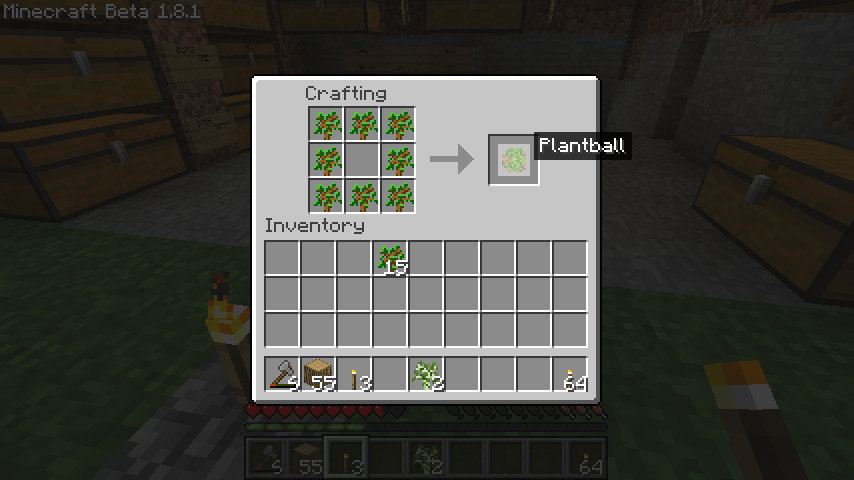 レシピは植物*8で植物の玉に、それを圧縮すると圧縮した植物の玉(Compressed Plants)になります。