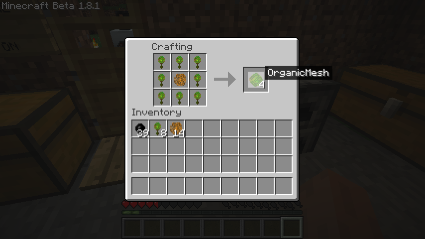 本来これは燃料セルなどに使用しますが、かわりに圧縮した植物の玉*8と樹液(Resin)を合成するとOrganicMesh*4になります。