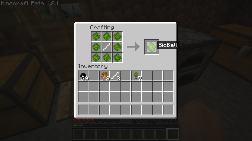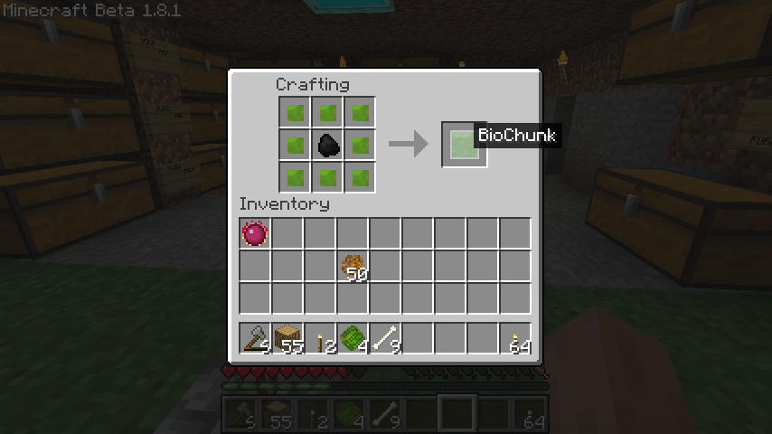 圧縮されたバイオボール*8を、木炭を中心にクラフトするとBioChankに。