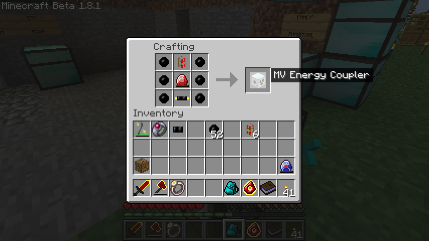 中圧エネルギー連結器(MV Energy Coupler)はゴム*6、木エネルギーパイプ、エナジークリスタル、金ケーブル。