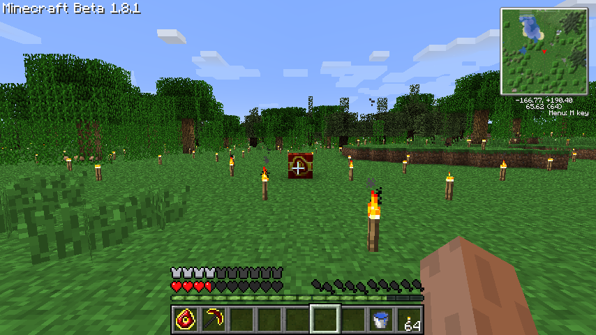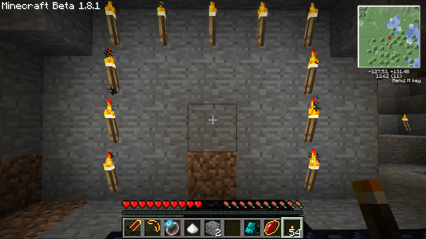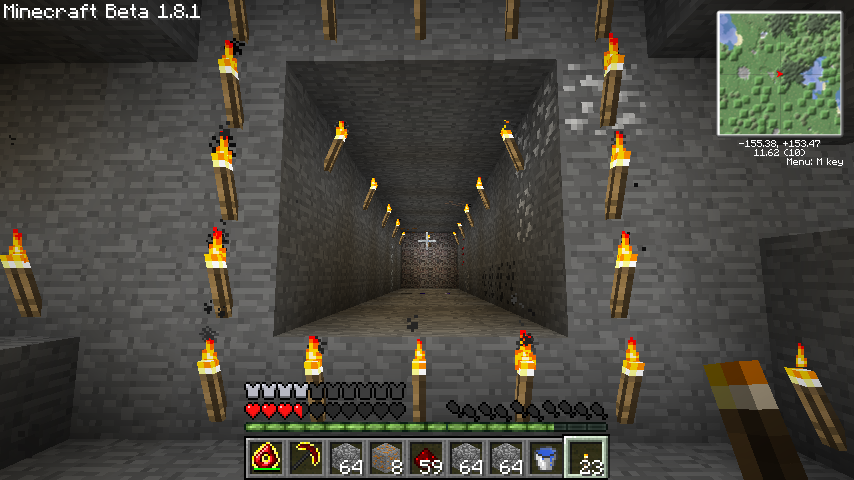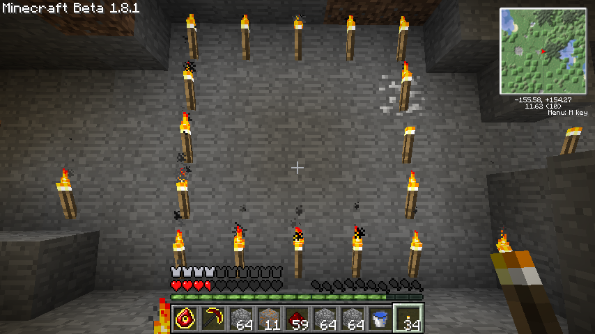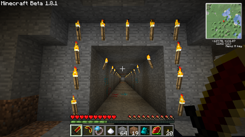 松明はわかりやすいように後から設置したもので、さすがに松明自動設置機能はありません。