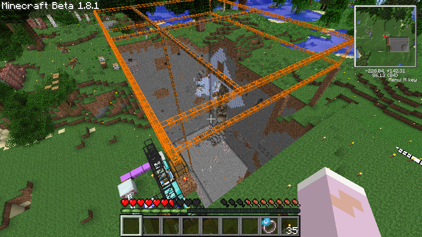 水・溶岩・岩盤以外のほとんどあらゆるブロックにたいして有効なので、うっかり自宅に向かってぶっ放したりしないよう気をつけましょう。