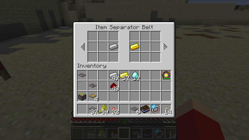 ベルトをクリックするとインベントリが開くので、ここで左右に分けるアイテムを登録します。