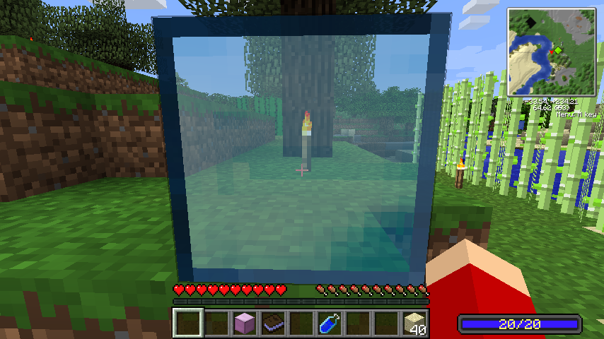 向こうが透けて見える透明なブロックで、殴って回収可能なので通常のガラスより便利です。