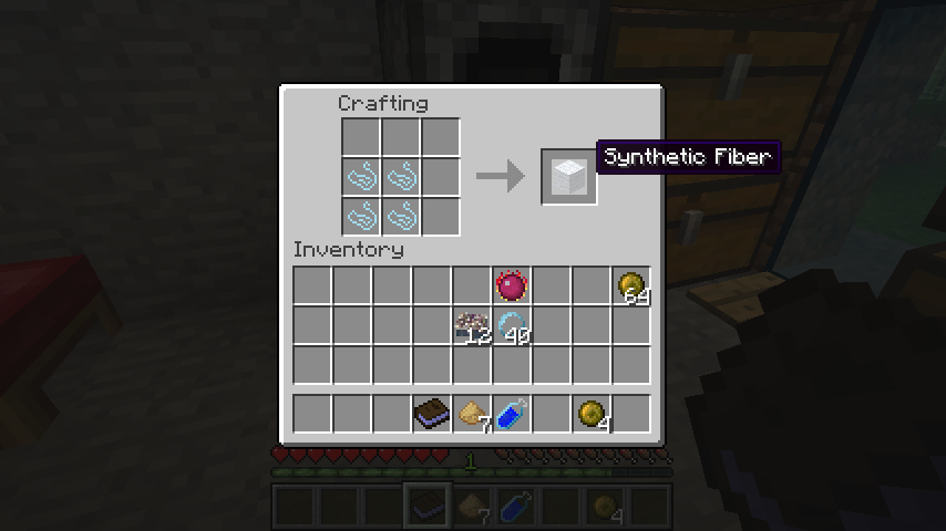 レシピは革ツール、合成繊維*6、合成糸*2です。