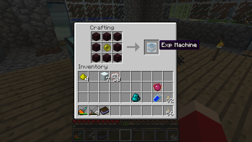 経験値宝珠+ネザー煉瓦*8で、経験値マシン(Exp Machine)。