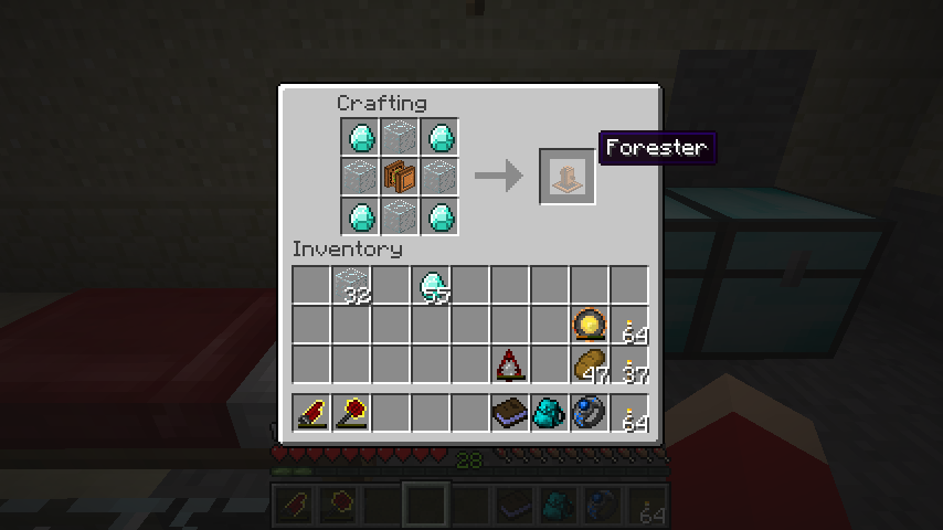促成マシンのレシピは通常の木用林業マシン、ガラス*4、ダイヤモンド*4。