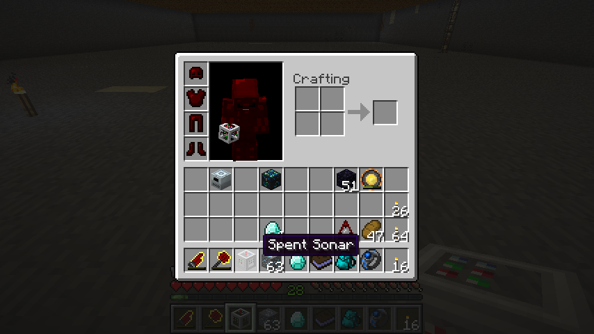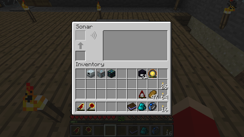 ただし、探知距離はソナーを中心とした64*64*64ブロックにしか及ばないようです。